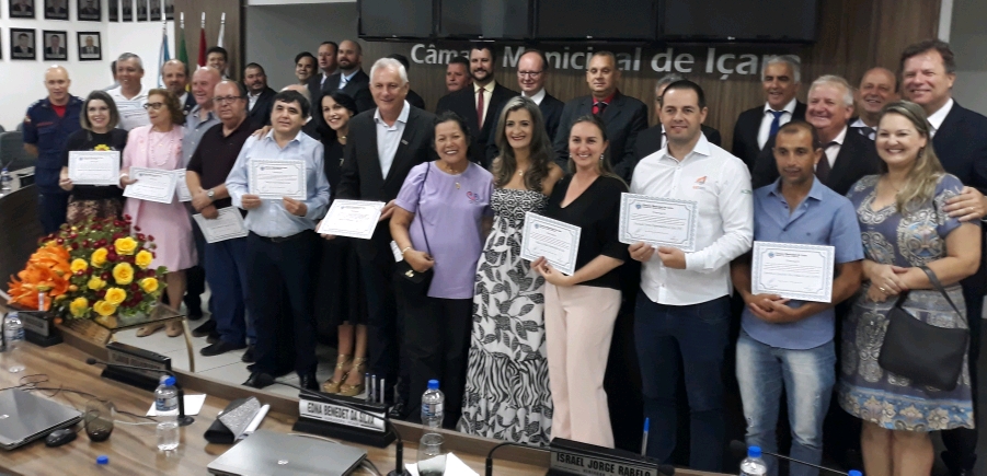 A Câmara Municipal de Içara concedeu certificados aos representantes de entidades em retribuição ao trabalho desenvolvido na cidade nesta quinta-feira, dia 22. A homenagem foi prestada em sessão especial à CDL, Coopafi, Hospital São Donato, Rede Feminina de Combate ao Câncer, Rotary, Apae, Ampi, Conseg, Uaci, Lions, além da Acii e os núcleos de jovens (Ajei) e mulheres empreendedoras.