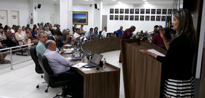 A última sessão ordinária do ano foi acompanhada por servidores municipais contrários à terceirização em tramitação. E contou com a aprovação final da mudança na Lei Orgânica Municipal sobre a perda de mandado aos vereadores que faltarem a mais de um terço das sessões em um mês. Com uma sessão extraordinária na mesma noite, o Legislativo concluiu a tramitação também do repasse de R$ 6 mil para a associação de catadores atingida por um incêndio na última semana e a Lei de Diretrizes Orçamentárias. “Tudo o que entrar agora precisará da assinatura dos líderes. Esperamos encerrar a pauta até a próxima semana”, coloca o presidente Alex Ferreira Michels (PSD).