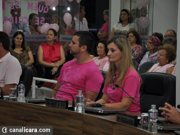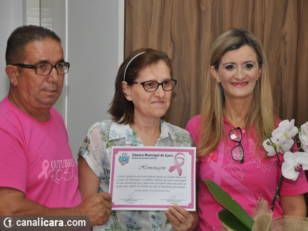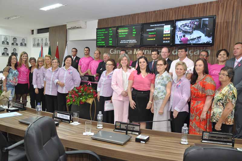 No mês dedicado a prevenção das mulheres, as homenagens da Câmara Municipal foram para a Rede Feminina de Combate ao Câncer, Amigas do Peito, Centro de Atenção a Saúde da Mulher Içarense e a Associação Amor e Vida. Todas as entidades envolvidas no combate ao câncer de mama foram reunidas numa mesma sessão alusiva ao Outubro Rosa nesta sexta-feira, dia 24. O evento presenteou também 11 mulheres com flores e um certificado pela vitória.