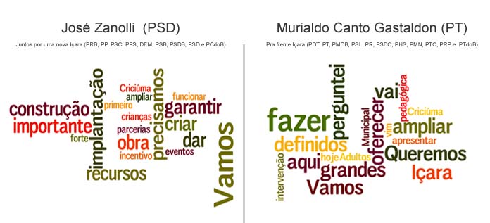 Murialdo Canto Gastaldon (PT) investiu principalmente nas ações feitas por José Zanolli (PSD) enquanto participante do Governo Municipal. Nas constantes referências, chamou inclusive o candidato de oposição como vice-prefeito. Em contrapartida, Zé preferiu mostrar propostas. E num dos poucos ataques, acusou o adversário de não cumprir oito horas diárias da Prefeitura. “Trabalhava apenas duas horas”, jogou.