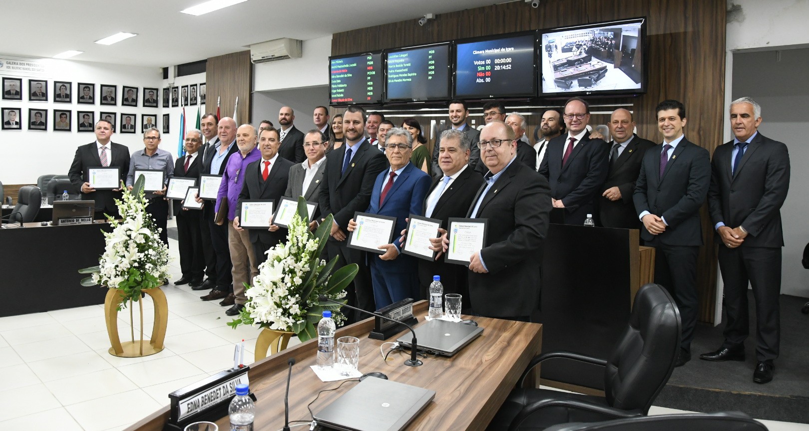Quatro décadas de dedicação ao comércio de Içara foram resumidas com homenagens aos ex-presidentes da Câmara de Dirigentes Lojistas no Legislativo Municipal nesta quinta-feira, dia 10. Vanderlei De Lucca, Nereu Casagrande, Antônio Luiz Casagrande, Santos José da Silva, Celso Luiz da Silva, Augusto Luiz da Luz, Aldo Vânio de Souza, José Dionísio Cardoso, Agilmar Pedro Viana, Jader Edinei de Souza, Paulo Roberto Brigido e Alexandre Fernandes contribuíram, em diferentes momentos da história da cidade, de forma voluntária, com o desenvolvimento içarense por meio do associativismo.