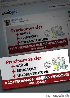 O Conselho Local de Saúde do bairro Nossa Senhora de Fátima investiu no Twitter e no envio de e-mails para divulgar o conceito que tem sobre o assunto. A manifestação é por mais saúde, educação e infraestrutura. "Não precisamos de mais vereadores em Içara", estampa a imagem divulgada.