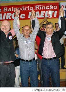 O ultimo comício no Rincão teve a participação especial do vice-governador Eduardo Pinho Moreira. O ato aconteceu na noite desta última quinta-feira, dia 4, com o envolvimento ainda do deputado federal Ronaldo Benedet (PMDB) e o secretário-adjunto de Saúde em Santa Catarina, Acélio Casagrande. Todos em apoio a Jairo Celoy Custódio (PMDB) e Naelti Viana (PP).