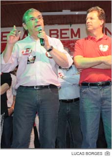 O vice-governador Eduardo Pinho Moreira fez o primeiro discurso num comício de Içara na noite desta ultima sexta-feira, dia 14. O evento ocorreu no Jardim Elizabete na campanha de Murialdo Canto Gastaldon (PT) e Sandro Giassi Serafim (PMDB). O encontro foi uma sequência as carreatas até o Centro Comunitário.
