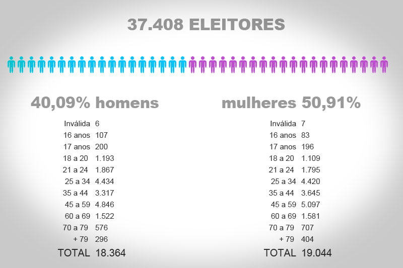 Desde a última eleição municipal em Içara, o eleitorado cresceu 3,31%. Isto significa que passou de 36,2 mil para 37,4 mil votantes nos últimos dois anos. Os números são do Tribunal Regional Eleitoral. Desse total, há 26,5% na faixa etária entre 45 e 59 anos. Outros 23,6% possuem de 25 a 34 anos. São os maiores percentuais. Já quanto ao sexo, as mulheres dominam com 50,9%. No quesito escolaridade, a maior parcela tem ensino fundamental incompleto: 40,6%. Somente 2,56% tem ensino superior completo. No universo total de votantes no município, por vez, cerca de 22,75% estão filiados em partidos.