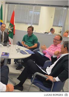 Antes de eleitos Murialdo Canto Gastaldon e Sandro Giassi Serafim já haviam buscado informações sobre projetos na Caixa Econômica Federal. Passado o pleito, ambos retornaram então à divisão regional nesta terça-feira, dia 23. O encontro movimentou os gerentes Gilberto Onofre da Luz, Altamir Durli, Gilbert Melo Schmitz e Valdonir Estivalet Teixeira, além do superintendente Robert Kennedy Lara da Costa.
