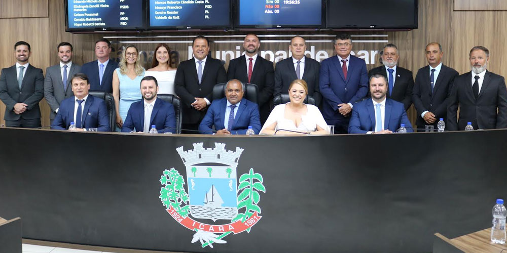 O mandato 2025/2028 começou com a posse da prefeita Dalvania Cardoso (PL), o vice Alex Ferreira Michels (PSD) e os vereadores neste dia primeiro de janeiro. A Sessão Solene de Instalação da Legislatura teve também a composição da Mesa Diretora da Câmara Municipal. Para o biênio 2025/2026, o vereador Eduardo Zata (PP) foi eleito presidente. Além de Duca, também por unanimidade, vão compor como vice-presidente Moacyr Francisco, o Cisquinho (PSD); segundo vice-presidente Geraldo Baldissera (MDB); primeiro secretário Charles Cargnin (PL) e segundo secretário Elisangela Zanolli Vieira Manarim (PSDB).