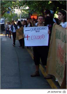 Os estudantes da Escola Professora Salete Scotti dos Santos foram para as ruas novamente na manhã desta terça-feira, dia 30. Eles ocuparam o calçadão central de Içara e cercaram a Rua Marcos Rovaris para protestar contra o governador Raimundo Colombo. A reclamação é principalmente quanto a reenturmação dos alunos. A unidade estadual do Centro da cidade deverá ter cinco turmas fechadas conforme determinação do Estado. Ainda nesta noite, os estudantes prometem voltar às ruas. Já na sexta-feira a manifestação acontecerá com o fechamento da SC-445 em Vila Nova.