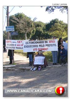 A mobilização de todo o PMDB do Sul de Santa Catarina em Içara não intimidou quem um dia já trabalhou na Associação Feminina de Assistência Social (Afasi). No encontro do partido no bairro Vila Nova, Luiz Henrique da Silveira foi recebido com um manifesto dos ex-servidores. Eles reivindicam o pagamento das rescisões sem o redutor proposto pelo Executivo Municipal. Por isso, colocaram faixas contra o prefeito Gentil Da Luz e até o boneco "Monge" no caminho do governador entre o campo de futebol do bairro - onde desceu de helicóptero - e o interior do Centro Comunitário.