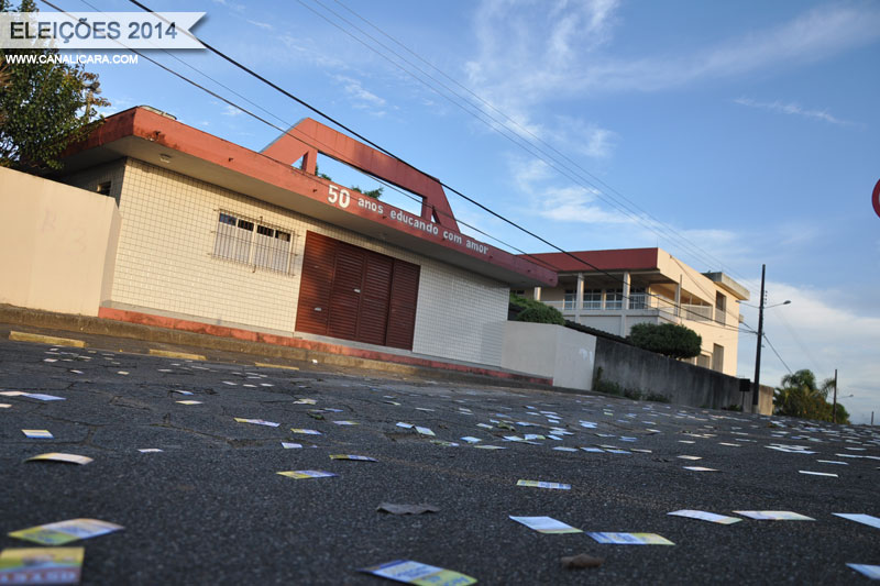O Tribunal Regional Eleitoral de Santa Catarina lançou a campanha “Quero minha cidade limpa” para evitar a sujeira provocada pelos santinhos. Mas não foi possível coibir o despejo do material de campanha nesta eleição. Na madrugada alguns dos locais de votação já tinham colinhas espalhadas pelo chão como no caso do Colégio Cristo Rei. A prática é uma tentativa de influenciar o eleitor que ainda não tem um candidato para alguns dos cinco cargos em disputa. Das 8h às 17h os brasileiros escolherão a Presidência da República, Senado, Câmara Federal, Governo do Estado e Assembleia Legislativa.