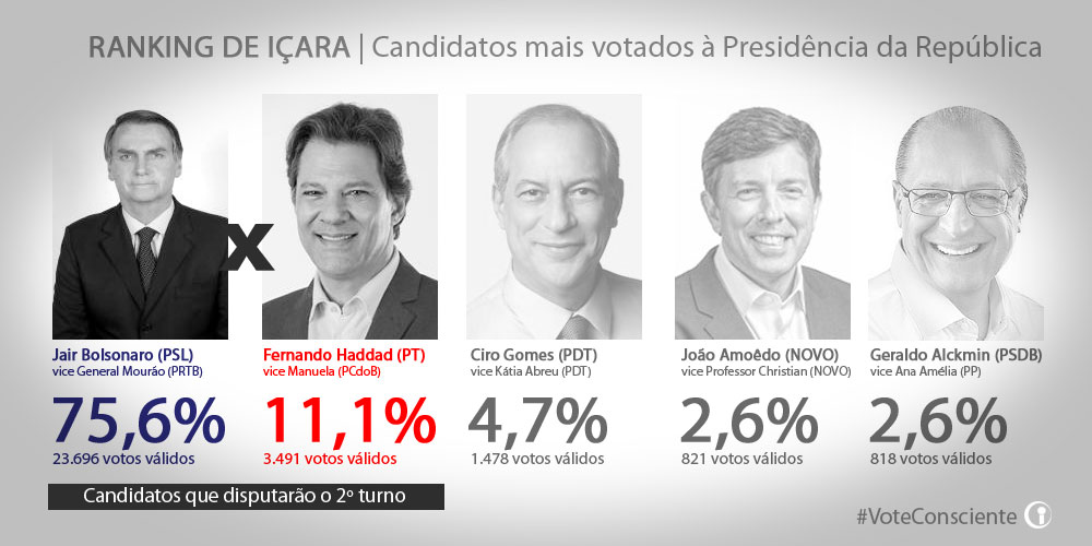 Jair Bolsonaro leva 75,61% dos votos válidos dos içarenses