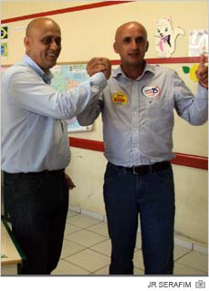 Após percorrerem diferentes locais de votação como fiscais da eleição majoritária, Jairo Celoy Custódio (PMDB) e Naelti Viana (PP) foram juntos registrar os sufrágios neste domingo, dia 7. Ambos ficaram parte da tarde em frente da Escola Melchíades Bonifácio Espíndola. Somente por volta das 16h30 os candidatos da coligação Viva a emancipação do Rincão entraram então para registrar o voto. “Vivemos um momento histórico. Foram onze anos de luta pela emancipação que se consolida agora nas urnas. Estamos confiantes e acima de tudo convictos do dever cumprido”, comentou Jairo.