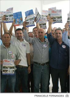 “Neste material estão todas as sugestões dos moradores que participaram dos Encontros de Ideias”, relata Jairo. “O povo acredita no nosso trabalho, pois eles nos conhecem, conhecem nossa história”, completa ainda o concorrente a vice-prefeito, Naelti Viana. “O nosso time tem trabalho para mostrar”, discursou também o deputado estadual.