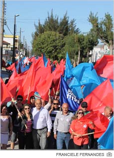 Bandeiras vermelhas e azuis ocuparam o Centro do Rincão neste sábado, dia 22. A caminhada da coligação Viva a emancipação do Rincão foi considerada uma das maiores mobilizações da aliança. “É emocionante ver essa multidão com bandeiras levantadas”, destaca o candidato a prefeito Jairo Celoy Custódio (PMDB). “Continuaremos fazendo nossos bandeiraços, comícios e carreata, pois o contato com o eleitor é essencial”, enfatiza o candidato a vice-prefeito, Naelti Vianna (PP). Neste domingo, será a vez de uma carreata com largada às 9h no comitê da aliança partidária.