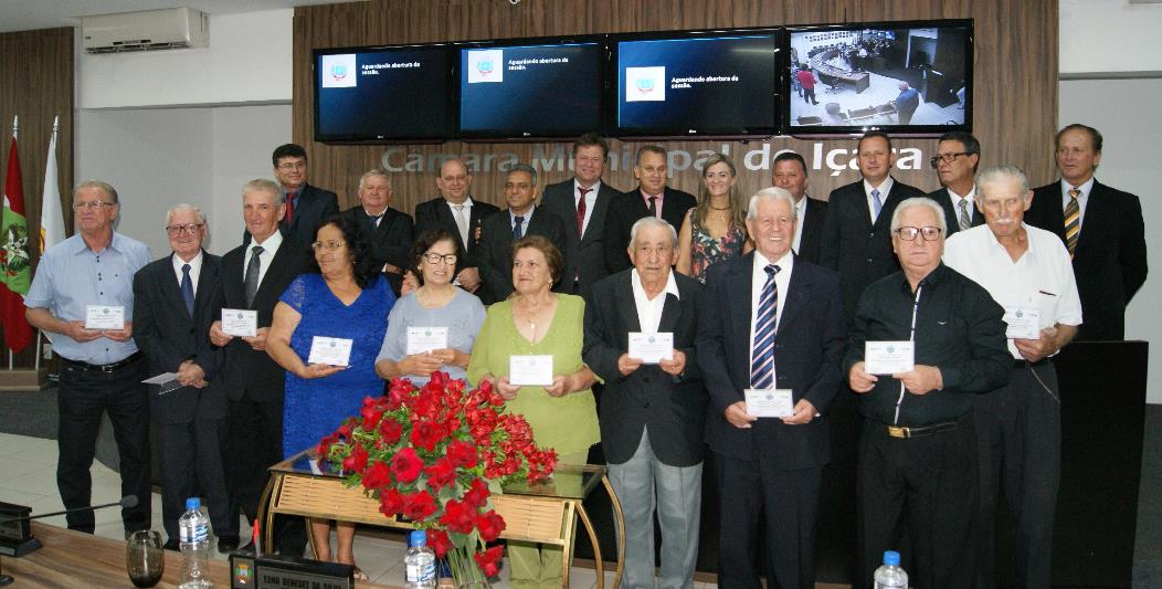 A Câmara Municipal de Içara realizou sessão especial alusiva ao Dia Internacional do Idoso [1 de outubro] na noite desta quinta-feira, dia 10. Receberam a homenagem Abrelino Dalmolin, Alzira Pagani Bitencourt, Cedolina Freitas Machado, Danúbio Gervásio Vieira, José Tournier Cardoso (Pinduca), Maria de Lourdes Batista Guessi, Otávio José Teixeira, Quinto Zanette, Valdemiro Jucoski e Vilmar Cechinel.
