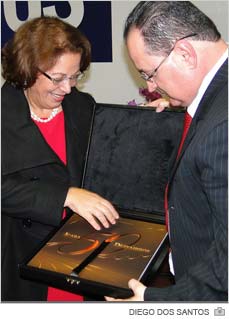 Com autoria de Archimedes Naspolini Filho, a iconografia "Içara, 50 dezembros" foi entregue para a ministra da Casa Civil, Ideli Salvatti, nesta última terça-feira, dia 26. O presente foi dado pelo prefeito Gentil Da Luz no IX Congresso Catarinense de Municípios.