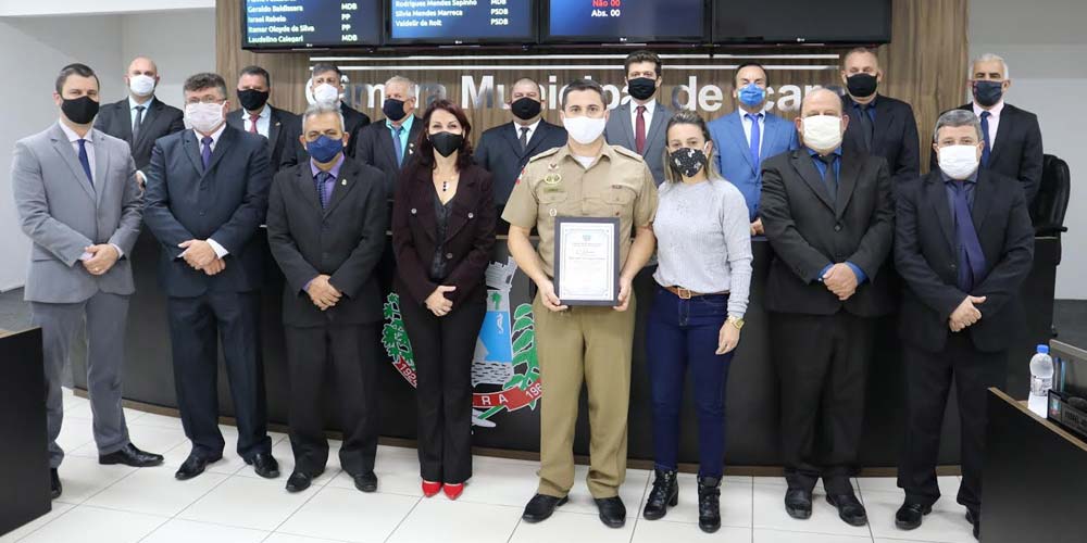 A Câmara Municipal de Içara entregou uma moção ao major Alberto Cardoso Cichella nesta segunda-feira, dia 22. A homenagem foi pela nova função de subcomandante do 9º Batalhão de Policia Militar de Santa Catarina. “A moção é uma forma de reconhecimento do seu currículo e dedicação aos ótimos serviços prestados a Policia Militar de Santa Catarina e a toda sociedade catarinense”, comenta a proponente da homenagem, a vereadora Silvia Mendes (PSDB).