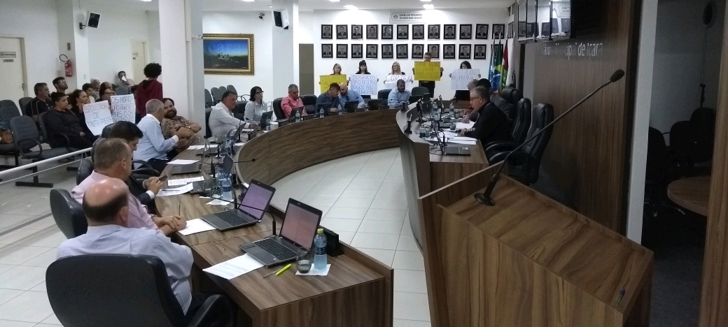 Movimentos descontentes com o Governo Municipal e a Câmara de Vereadores se uniram em uma mesma manifestação nesta quarta-feira, dia 2. Os participantes criaram cartazes contra a manutenção do subsídio do vereador Márcio Dalmolin (PSD), atualmente, afastado por decisão judicial. Além disso, pediram respeito durante a sessão legislativa.