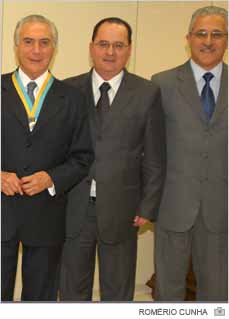 A medalha pelo cinquentenário administrativo de Içara foi entregue para mais uma personalidade nesta quarta-feira, dia 16. Desta vez a versão ouro da honraria teve como destino o vice-presidente da República Michel Temer. “Participamos da Marcha dos Prefeitos, estivemos em audiência em várias secretarias e cumprimos agenda no gabinete do vice-presidente Michel Temer com quem tratamos de assuntos relacionados ao nosso município e a quem entregamos a Medalha de Mérito do Jubileu de Ouro”, destaca o prefeito Gentil da Luz.