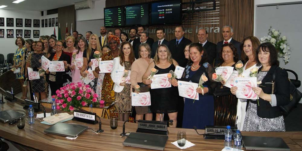 Vinte e quatro mulheres foram escolhidas para representar a força feminina em uma sessão especial na Câmara Municipal de Içara nesta terça-feira, dia 27. Conforme a vereadora Edna Benedet da Silva (PCdoB), mais do que resgatar e valorizar a dedicação e o trabalho das mulheres no crescimento e desenvolvimento do município, a homenagem serviu para destacar a caminhada na reivindicação dos direitos e conquistas no espaço da sociedade.
