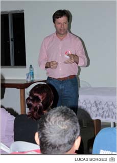 O salão de festas do Condomínio Amanda Costa recebeu os candidatos Murialdo Canto Gastaldon (PT) e Sandro Giassi Serafim (PMDB) na noite de terça-feira, dia 14. No discurso, ficaram promessas para a participação dos jovens em formação universitária nos serviços públicos. E, além disso, de novos investimentos em programas sociais com foco habitacional à exemplo do residencial visitado.