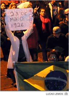 O movimento #VemPraRuaIçara não reuniu apenas adeptos favoráveis na noite desta sexta-feira, dia 21. A manifestação também teve protestos contrários ao próprio ato, inclusive, com direito a discurso. Foi um exemplo da democracia que se pretende manter. Entre centenas de cartazes, um pelo menos chamou atenção ao passado e alertou para consequências indesejadas. Sem mostrar o rosto do autor, o aviso ocorreu com referência a 28 de maio de 1926. "#Cuidado", apontou o anônimo no meio da multidão.