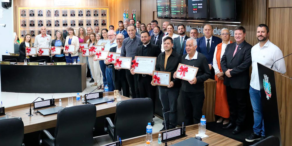 O jubileu dos 75 anos da Paróquia São Donato foram comemorados pela Câmara Municipal de Içara em Sessão Solene nesta terça-feira, dia 14. Atuais padres, párocos (em vida) e comunidades que compõem a paróquia também foram homenageados. “O jubileu de 75 anos de nossa paróquia é uma linda história que, por sinal, se mistura com a história de nossa cidade. É hora de pensarmos no amanhã da paróquia São Donato. Um amanhã que está em nossas mãos, será a força de nossa fé e da nossa unidade que continuará a iluminar Içara em um mundo cada vez mais tomado pelas trevas do ódio, da indiferença e das incertezas”, ressalta o proponente da Sessão Solene, vereador Higor Robetti (PSD).