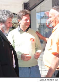 O deputado estadual Pedro Baldissera (PT) entrou na campanha por Murialdo Canto Gastaldon (PT) e Sandro Giassi Serafim (PMDB) nesta segunda-feira, dia 6. O padre que ocupa a função também de parlamentar almoçou com os candidatos da coligação Pra frente Içara. E ainda aproveitou para conversar com içarenses, além de rever familiares na cidade.