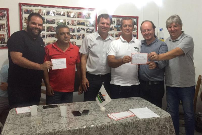 O PMDB oficializou três novos integrantes nesta sexta-feira, dia 1. À nominata proporcional foi incorporado o ex-petista Paulo da Silveira. Além disso, o partido recebeu as fichas do secretário municipal de Planejamento Arnaldo Lodetti Júnior e do advogado Paulo Preis Neto. As filiações foram homologadas pelo presidente em exercício Antônio de Mello. O ato nesta tarde foi acompanhado ainda pelo prefeito Murialdo Canto Gastaldon e o vice Sandro Giassi Serafin.