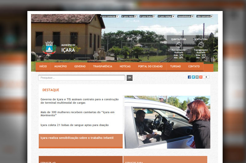Os contribuintes de Içara que acessarem o site do Município a partir desta semana encontrarão o portal oficial da cidade com novo layout. As páginas foram adequadas ao novo modelo oferecido gratuitamente pela Federação Catarinense dos Municípios com preocupação, por exemplo, pela acessibilidade. O conteúdo publicado em www.icara.sc.gov.br foi dividido em Governo, Transparência, Notícias, Portal do Cidadão, Turismo e Contato.