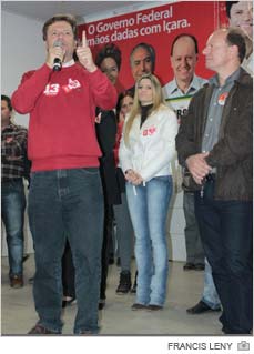 As propostas de Murialdo Canto Gastaldon (PT) e Sandro Giassi Serafim (PMDB) foram apresentadas no bairro Primeiro de Maio na noite desta quinta-feira, dia 27. No discurso, os candidatos da coligação pra frente Içara prometeram a parceria entre o Governo Municipal e Federal. E ainda convocaram a militância para a campanha. “O objetivo de nossa candidatura é de querer fazer um novo modelo de administração, com responsabilidade do dinheiro público”, declarou Sandro.