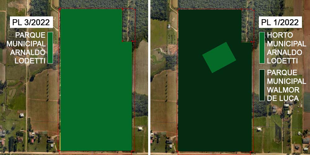 Os vereadores Edson Freitas (MDB) e Geraldo Baldissera (MDB), por vez, apresentaram o PL 1/2022 que denomina a área no entorno do horto de Parque Municipal Walmor Paulo De Luca, com 150 mil metros quadrados, semelhante ao projeto apresentado pelo Poder Executivo em 2020 (PL 45/2020), mas não votado naquele ano e nem em 2021, quando foi desarquivado.