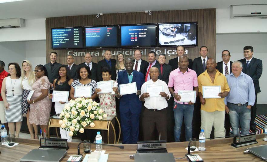 Homenageados: Adão Correia Jesuíno, Ademar Fernandes, Augusto Lourenço de Almeida, Cecilia de Olindo Oliveira, Claudenir José Tereza, Genício Patricio Anacleto, Maria Tereza Chagas, Reinildo Oliveira, Romilda Damazio de Souza, Rosimere Pereira de Souza e Valmir do Santos.