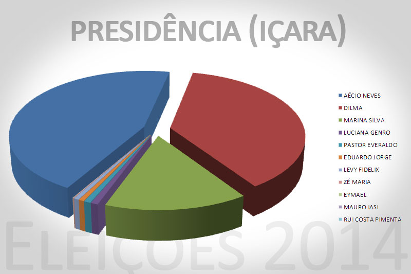 Em Içara, o candidato tucano saiu das urnas com quase dois mil votos de vantagem em relação à atual presidente da República. Dos 32.231 içarenses que foram às urnas no último domingo, 13.255 manifestaram apoio para Aécio, totalizando 44,91% dos votos válidos. Já Dilma Rousseff, alcançou a preferência de 11.022 eleitores (37,34%). No turno inicial, outros 4.434 eleitores (15,02%) votaram em Marina Silva. Os demais candidatos não atingiram a marca de 300 votos.