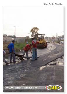 Funcionários da construtora Confer passaram o final de semana trabalhando na pavimentação de uma nova rótula na SC-444, no bairro Liri, a poucos metros do posto da Polícia Rodoviária Estadual.