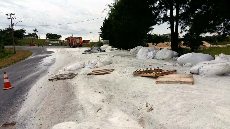 Um caminhão de Araranguá com carreta de Orleans tombou na Rodovia Otávio Dassoler em Criciúma por volta das 10h30 deste sábado, dia 3. Conforme o motorista, de 31 anos, o acidente foi provocado pelo deslocamento da carga para a esquerda ao virar o veículo na direção contrária.