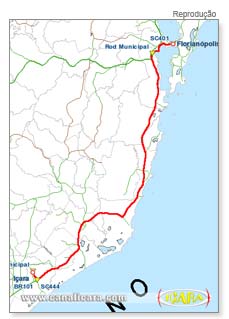 Cidades do percurso: Içara, Tubarão, Capivari de Baixo, Paulo Lopes, Palhoça, São José, Florianópolis