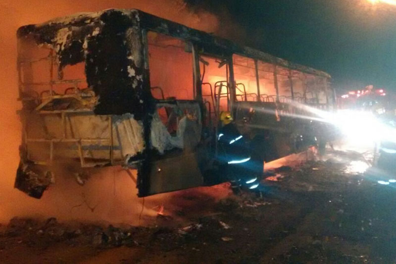 Os últimos itinerários de transporte coletivo entre Criciúma, Içara e Balneário Rincão foram mantidos sob escolta após as 20h desta sexta-feira, dia 16. Isto porque três homens armados embarcaram já próximo da garagem no Rincão e atearam fogo no veículo.