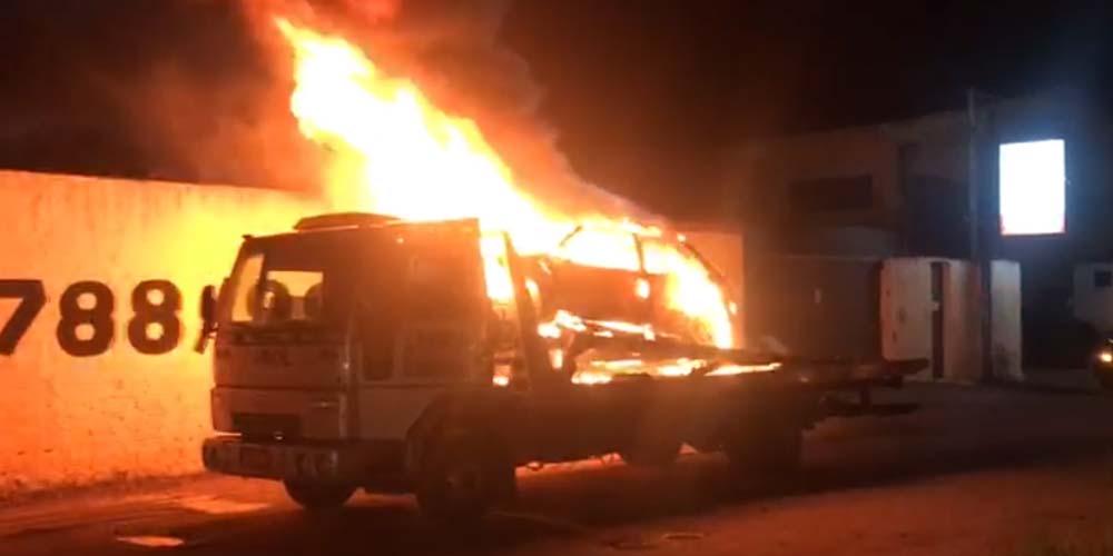Automóvel apreendido pela PM pega fogo ao ser transportado por guincho