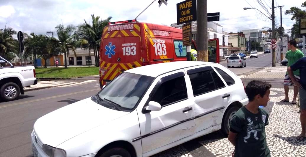Um Gol de Içara avançou sobre o calçadão da Avenida Procópio Lima e derrubou uma placa após ser atingido por volta das 12h05 deste sábado, dia 18. O motorista de 65 anos - impactado na lateral por um veículo de fora da cidade - relatou dores no tórax e foi encaminhado ao Hospital São Donato pelo Corpo de Bombeiros. Já o condutor do Pálio de Criciúma que cortou a preferencial ao atravessar a Rua Vitória não teve lesões.