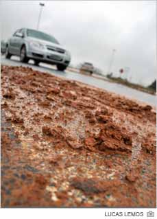 A queda de blocos de barro exige atenção dos motoristas que passarem sobre a Rodovia Ângelo Valvassori. O problema está no trevo com a Jorge Zanatta, no Anel de Contorno Viário. No local, a associação do material sobre a pista com a chuva deixou o ponto escorregadio.