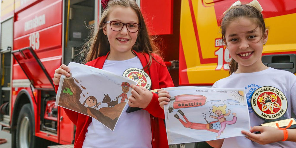 Dois desenhos de alunas da Escola Maria Arlete Bitencourt Lodetti estamparão o calendário do ano de 2019 do Corpo de Bombeiros de Santa Catarina. Helena Fernandes Rodrigues conquistou o primeiro lugar na categoria mergulho e Ellen Inácio Maximiano na categoria operação com cães. Elas receberam os troféus das mãos do comandante da companhia de Bombeiros de Içara, capitão Renan Silvério Renan Silvério Fernandes, na tarde desta quarta-feira. O ato, realizado na própria escola, reuniu professores, alunos, pais e direção, além de integrantes do batalhão de Içara.