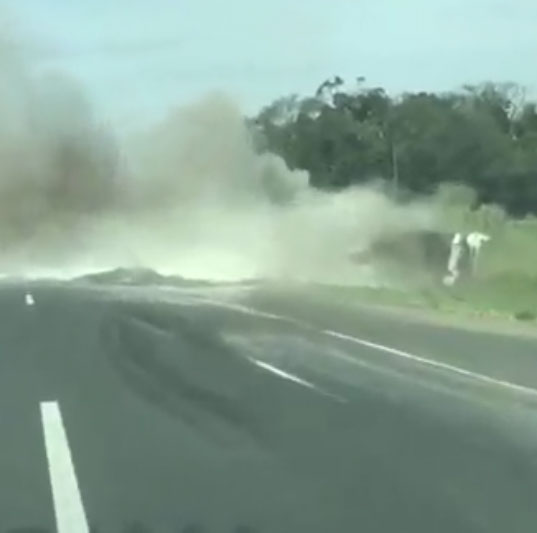 Viaturas da Polícia Militar de Içara, Balneário Rincão, Criciúma, Araranguá, Morro da Fumaça e Jaguaruna se envolveram na perseguição ao causador da capotagem apontado também pelo furto de um caminhão em Içara. O motorista de 23 anos chegou a ir até Criciúma pela BR-101, bateu num Prisma e fez o retorno. Após jogar o caminhão para fora da pista no bairro Vila Nova, furou um bloqueio em Esplanada e manteve a tentativa de fuga até Jaguaruna, onde acabou detido.