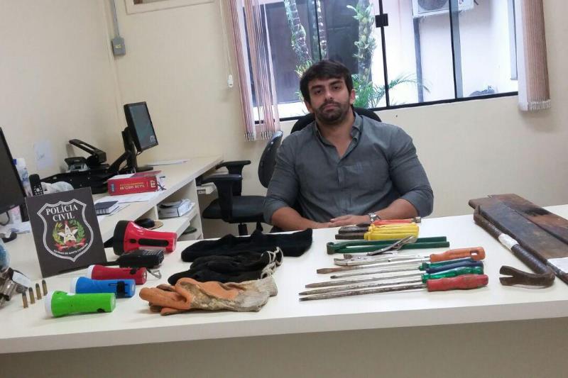 Os criminosos de Criciúma já tinham passagem por roubo, furto e até arrombamento de caixa. Eles responderão por associação criminosa, porte de arma e tentativa de furto qualificado. Com eles estava um revólver de calibre 38 abastecido com quatro munições, quatro lanternas, um rádio comunicador sintonizado na frequência da Polícia Militar, máscaras, luvas, álcool e ferramentas. "Possivelmente não seriam utilizados explosivos por ser um prédio no Centro da cidade", pontua o delegado.
