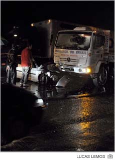 Um Celta de Criciúma teve parte da frente destruída por volta das 18h20h desta terça-feira, dia 24. O impacto ocorreu contra um caminhão de Sumidouro (RS) no trecho da SC-444 próximo ao Fórum de Içara. O acidente resultou em filas nas duas pistas. Condutora do carro, MM, de 31 anos, foi socorrida pelo Corpo de Bombeiros e logo em seguida teve encaminhamento ao Hospital São Donato desacordada e com fratura na face. Já o motorista do caminhão, LJM, de 56, não teve lesões.