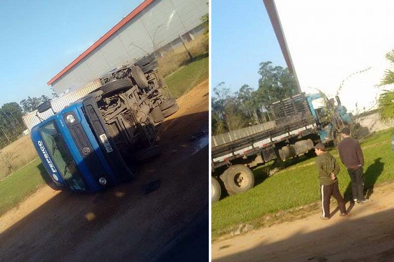 Um caminhão Volkswagen de São Paulo tombou na margem da Rodovia Deputado Paulino Búrigo (SC-445) após colidir contra um Mercedes Benz de Grão-Pará na manhã desta quinta-feira, dia 7. Conforme relatado pelo motorista para a Polícia Militar Rodoviária, o acidente foi provocado por um problema mecânico por volta das 8h10. A falha resultou na invasão da pista e também no impacto contra o veículo que vinha na direção oposta no trecho de Vila São José. Ninguém se feriu.