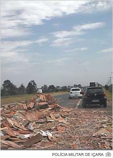 Materiais cerâmicos carregados por um caminhão foram derramados na BR-101 por volta das 13h15 desta quinta-feira, dia 8. O acidente aconteceu no quilômetro 373 da pista Norte/Sul, em Içara. Conforme o agente rodoviário federal Ademir Bento, uma máquina já trabalha na remoção de toda a carga. Para manter o tráfego o trânsito foi desviado então para o acostamento.