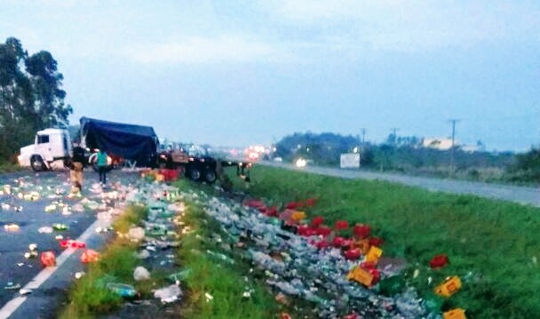 Carreta de Içara tomba com bebidas na BR-101