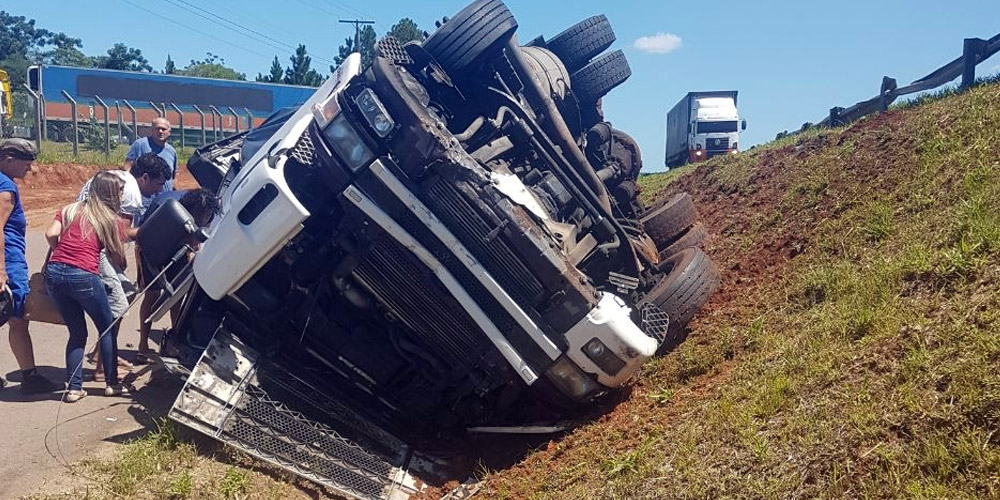 Uma carreta de São José dos Pinhais (PR) tombou na margem da Rodovia Mário Covas (BR-101) em Içara por volta das 13h03 desta quinta-feira, dia 8. Parte da cabine foi esmagada, mas o motorista, de 35 anos, saiu apenas com lesões leves do acidente na comunidade de Rio dos Porcos. Ele foi atendido pelo Corpo de Bombeiros e encaminhado ao Hospital São Donato.