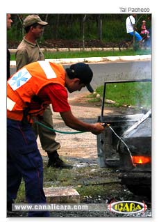 Nervoso com o acontecido, o proprietário do veículo, que não quis se identificar, alegava falta de respeito por parte dos bombeiros. “Onde é que já se viu isso? O meu carro pega fogo e os bombeiros vêm com baldes e mangueirinha para apagar o fogo? ”, interrogou.